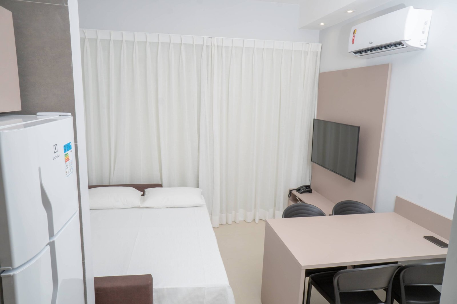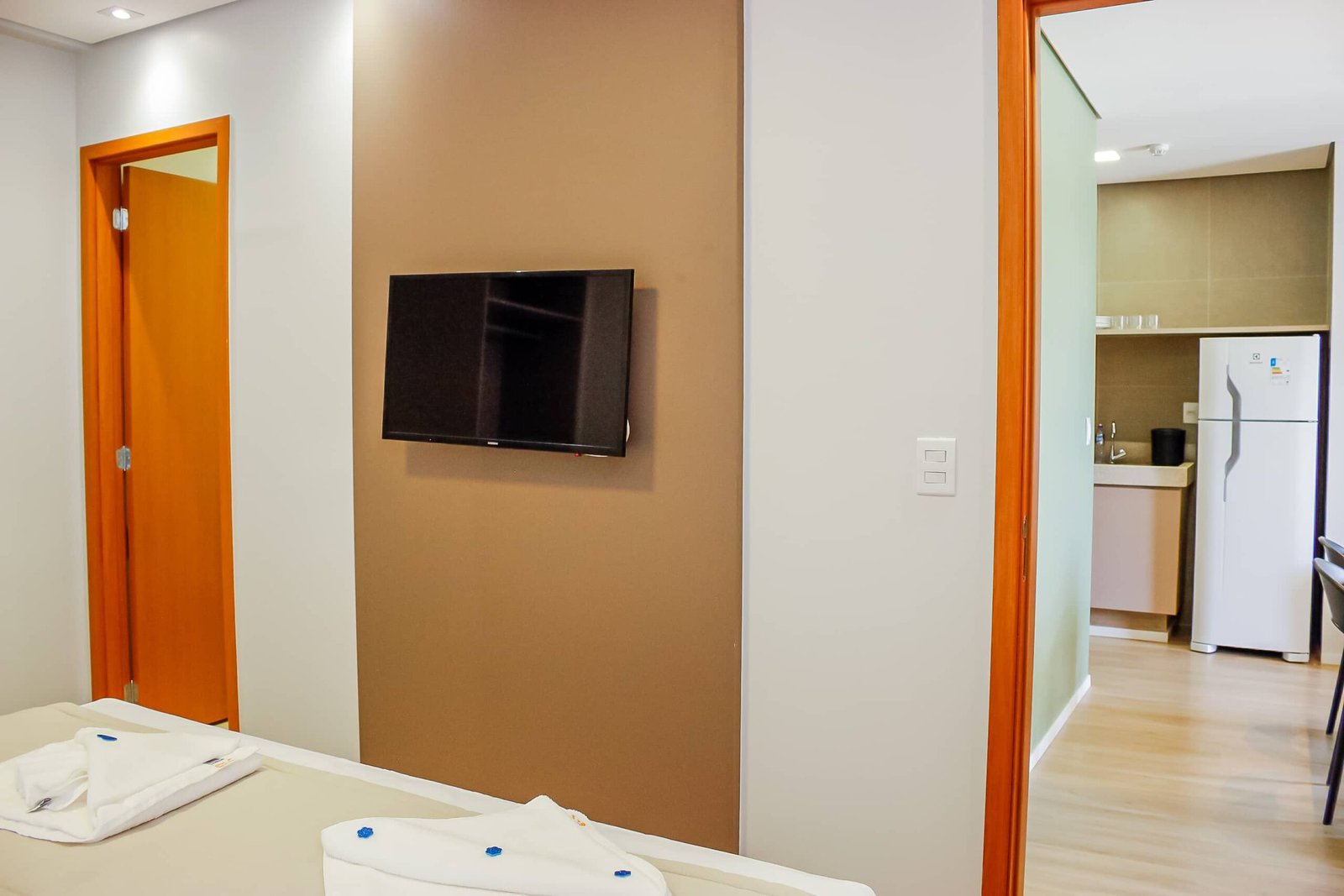 Os apartamentos possuem 54 m², com 2 quartos (1 suíte), banheiro social e sala ampla, além de TVs Smart com sinal em HD, garantindo mais conforto durante a estadia.